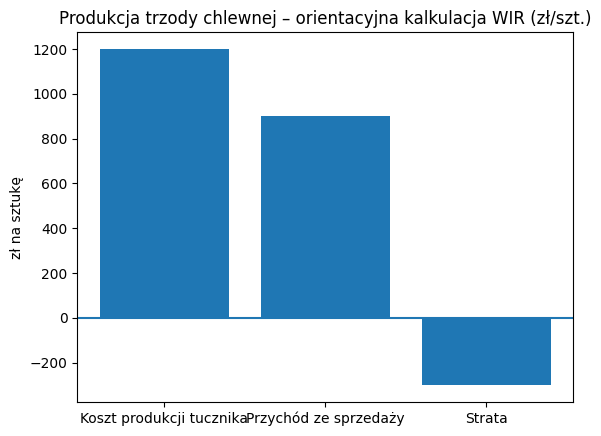 Wykres 1 – Orientacyjne koszty, przychód i strata na tucznika