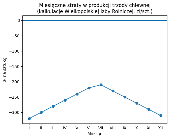 Wykres 2 – Miesięczne straty w produkcji trzody chlewnej (zł/szt.)